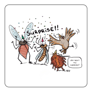 Science can be hard to connect with, especially when the topic feels distant or technical. Cartoons break down that barrier. Illustrator Betje Ton brought the research to life through the eyes of the insects themselves: a mosquito lounging in a warm puddle, ticks celebrating their new reporting app, a sandfly checking climate forecasts before deciding where to travel next.