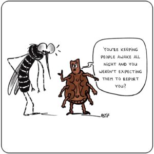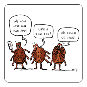 Science can be hard to connect with, especially when the topic feels distant or technical. Cartoons break down that barrier. Illustrator Betje Ton brought the research to life through the eyes of the insects themselves: a mosquito lounging in a warm puddle, ticks celebrating their new reporting app, a sandfly checking climate forecasts before deciding where to travel next.